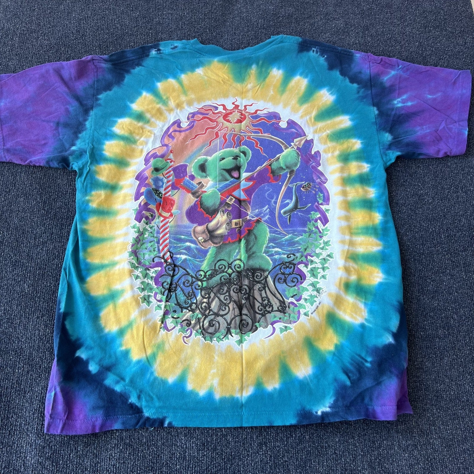 Vintage Grateful Dead Shirt Mens Extra Large Tie Dye Liquid Blue Bear Roses 90s Band